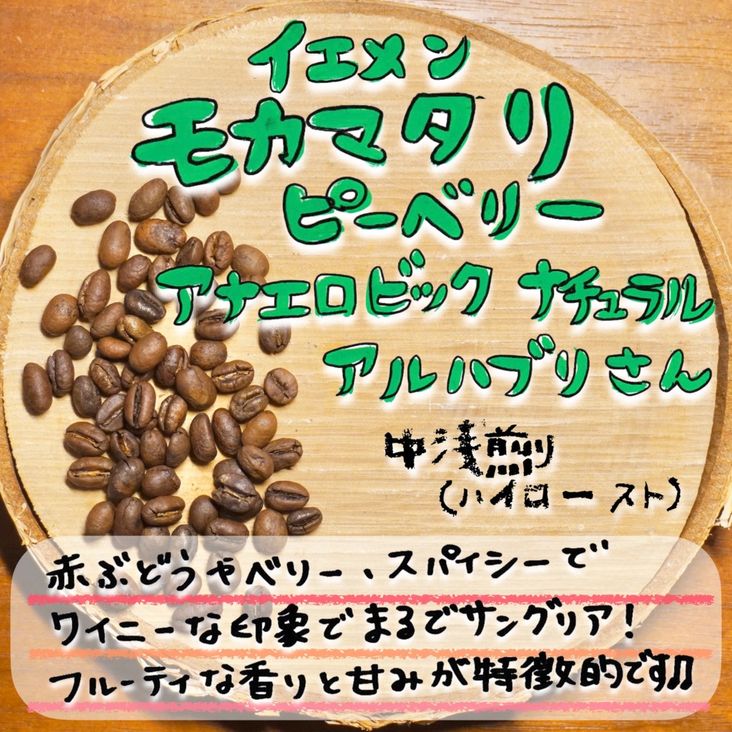 ★たのしくる限定コーヒー★ イエメン モカマタリ アルハブリさん ピーベリー アナエロビックナチュラル【¥3500/100g】相当
