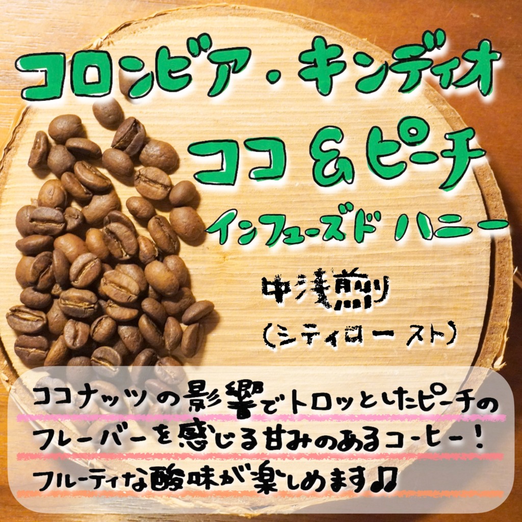 ★4月限定コーヒー★中浅煎り コロンビア キンディオ ココ&ピーチ インフューズドハニー【¥3100/100g】