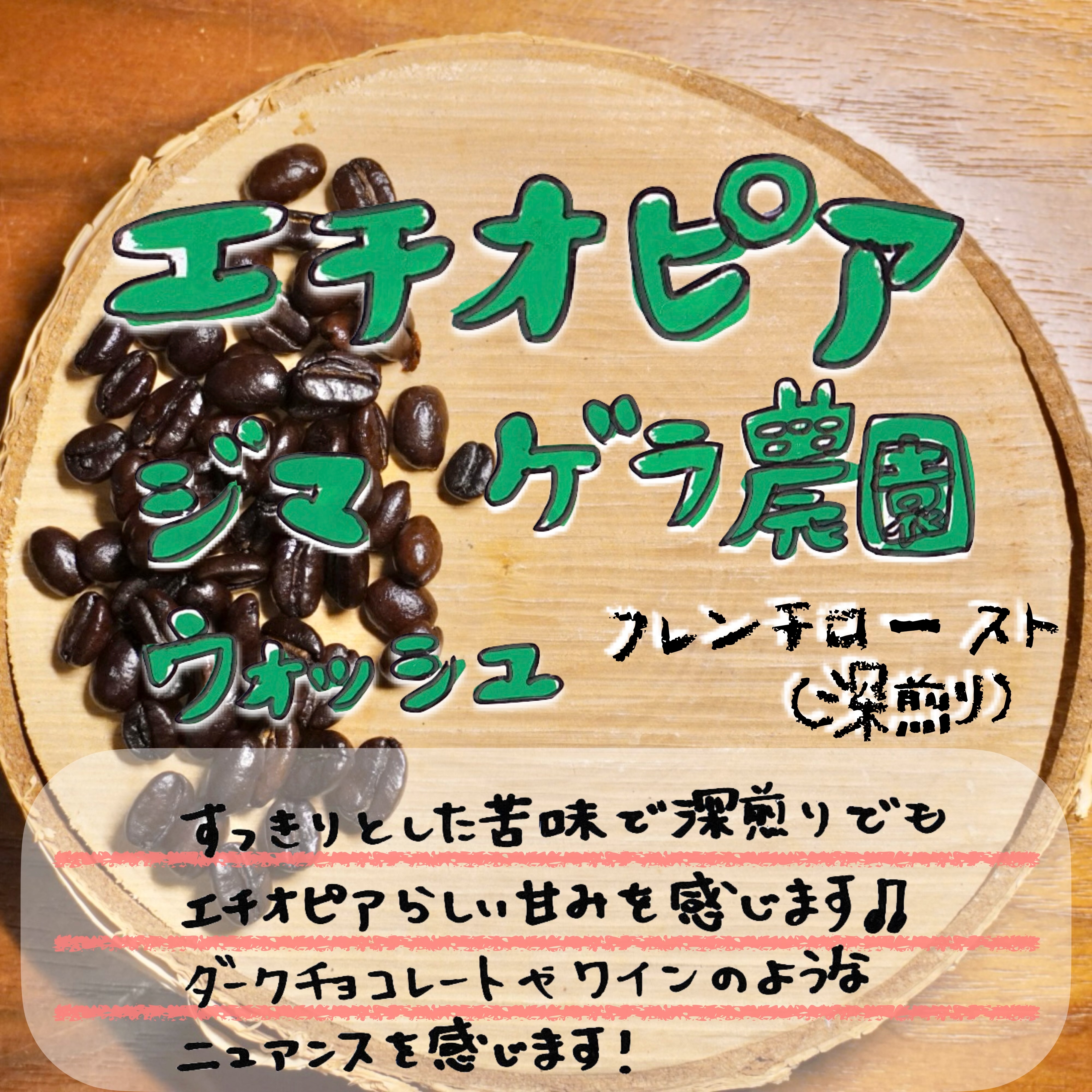 スッキリとした苦味で深煎りでもエチオピアらしい甘みを感じます。