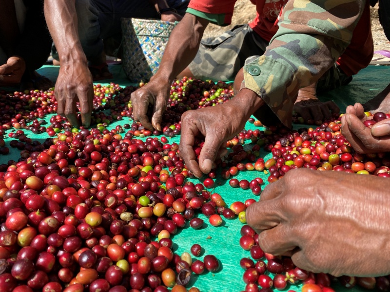 共に汗を流しながら育んでいる、そんなコーヒーです。レテフォホは東ティモール最高峰ラメラウ山のふもとに位置し、標高が1,400~1,800mという高地であり、日中と夜間の温度差が他地域に比べても大きく、雨季には降雨量が2500~3000ミリに達するため、東ティモールの中でも最上級の品質のコーヒーが採れています。