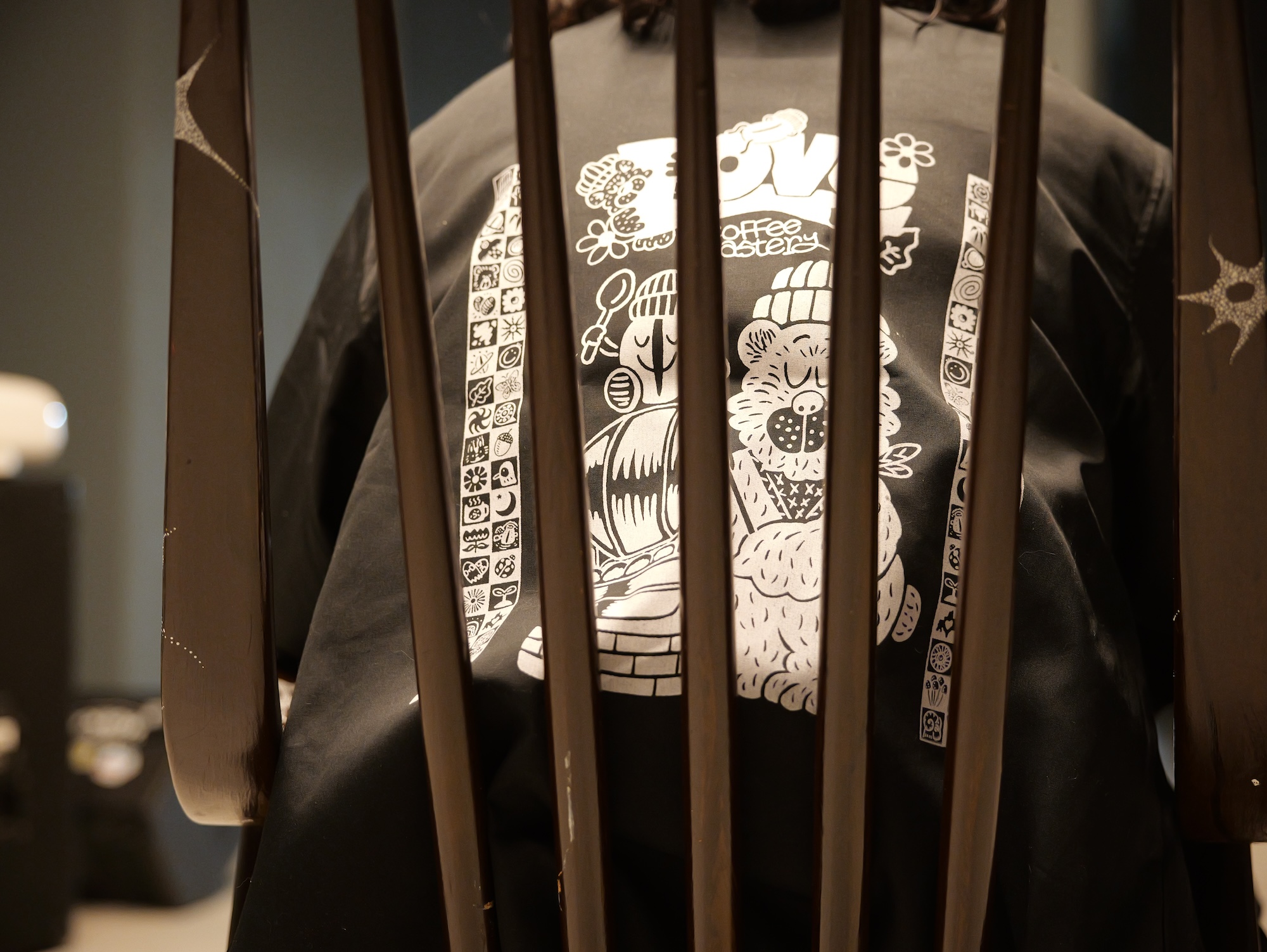 グラフィックはSkaterでありPainterの“Soapbar” (Eikichi Maeda)によるDetailまでこだわった一着。