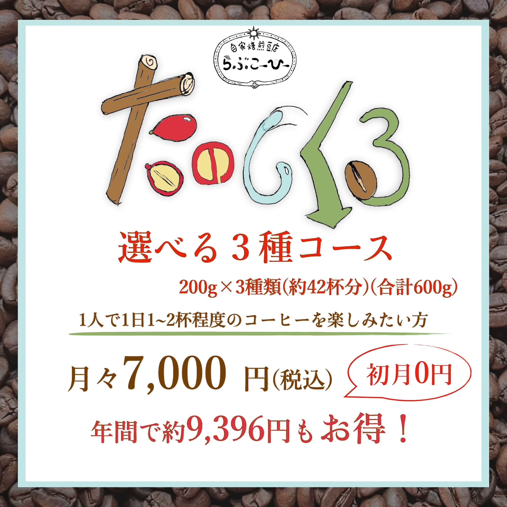 定期便「たのしくる」楽しいが届く! らぶこーひーの定期便 3種コース 600g